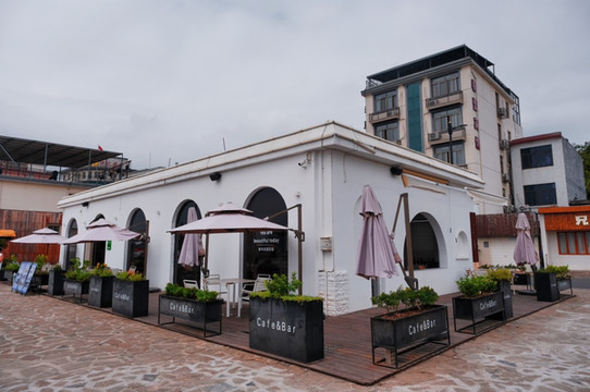 又见咖啡馆的前身是只有一个老屋顶的公交车站,在这个极有标志意义的位置上重新搭建一家 ins风的咖啡馆,充满海岛的浪漫气息,纯白色房子,拱形的窗户,窗外蓝色的大海十分的治愈!