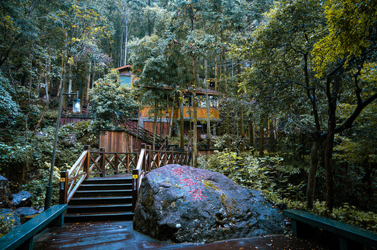 在宁波宁海天明山的峡谷中,有一个森林温泉酒店,在这儿可以住宿/泡温泉/唱K/下午茶/游泳等等,这就是天明山森林温泉酒店。
