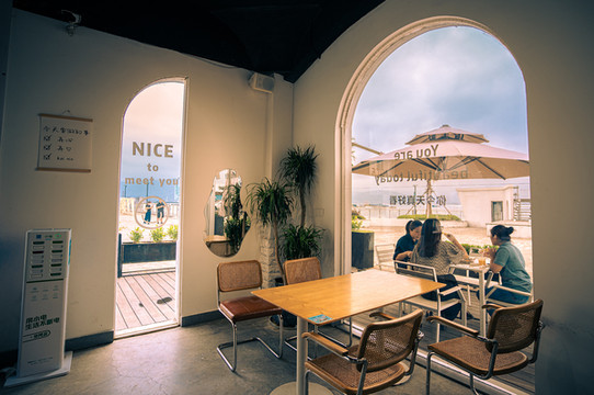 宁海湾码头边有一家非常nice的咖啡店,也是很多网红小姐姐出没的地方。