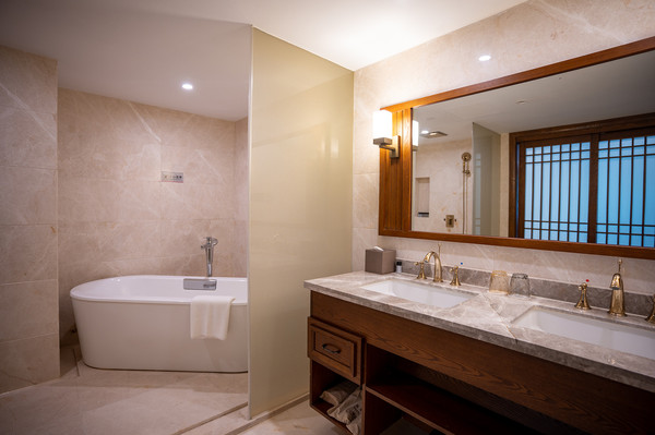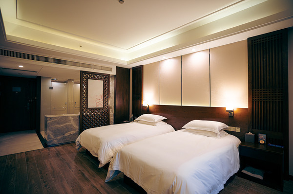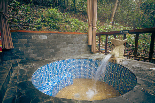 客房是相当的大,超大的窗户,拉开窗帘就可以看到美景,打开水龙头,就能看到清澈的温泉水,呆在房间里就能泡温泉!