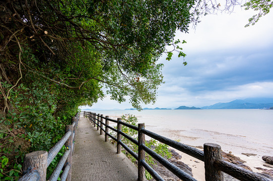 沿着庵旁边的沿海林荫道,可以看到退潮时的滩涂,下去赶海,抓些食材也是不错的玩法。