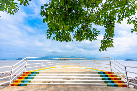沿海的这一段走完,即可看到蜃海湾,这边有沙滩/民宿/泳池/天空之镜/餐饮等各种网红打卡点,住在民宿里,远离城市的喧闹,静静的做几天岛主,陪你的只有安静的空气,和起床就能看到的美景。
