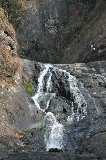 五泄风景区必须乘船进入,下船后可乘电瓶车,往返10元,亦可由步行道徒步前往。其实步行大概也就一公里左右吧。先是到达五泄禅寺,这个禅寺当年我来时刚刚建好,无意的话可以掠过。继续前行就是五泄的第五泄,最下面的瀑布,五泄顺序是由上而下分布。瀑布虽不算大,但是蛮有气势,当年水势大时,也是声震峡谷,如雷贯耳。不过这个季节有些悠然莞尔,娇小可爱。没想到它竟是五泄的最大最有气势的老大,下面的四泄,更是温文尔雅,小家碧玉。从五泄到一泄,需要攀登若干台阶,距离不远,水势一泄不如一泄,很快就可看完,大多数游客到此为止,回头返程。