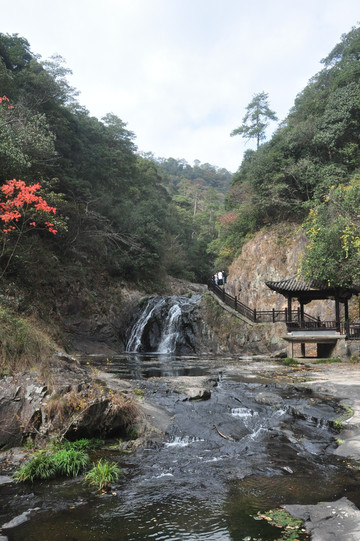 诸暨五泄风景区位于诸暨市西北23公里处。72峰、36坪、25崖、10石、5瀑、3谷、2溪、1湖,为五泄构成了天然的山水画卷,素有"小雁荡"之称。当地人称瀑布为泄,一水折为五级,所以叫"五泄"。
