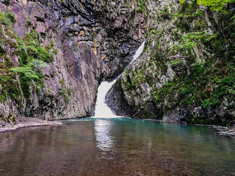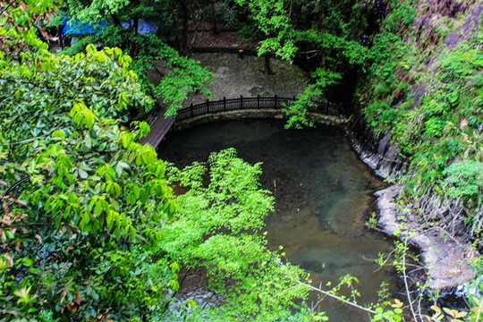 瀑布下面的深潭大约5米,黝黑无底,俗呼“大脚桶潭”。