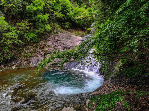 从第一泄一直往下行,直到第五泄,峡谷内溪流潺潺,藤蔓缠绕,树木幽深,感受其中轻柔、猛烈的变化。