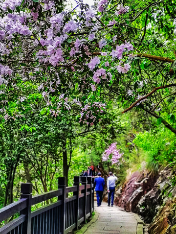 山上的野杜鹃花开了,淡紫色的很好看,一朵一朵的密密麻麻地开满了枝头。