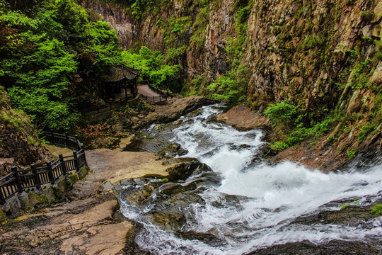 瀑布下首建的亭名“双壑亭”,现称“云垂亭”。坐在亭中赏景,似见万物空澈澄明,顿觉天高地广,能洗净五脏六腑污垢,抛尽人间烦恼。