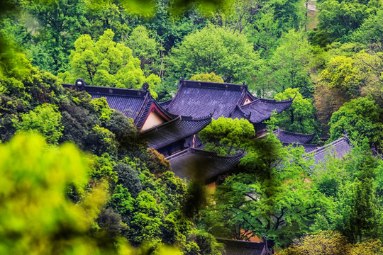 站在高处,透过树叶间的空隙,看到山脚下的五泄禅寺。五泄禅寺坐落于五泄风景区的核心地带,唐、宋、明、清,五泄禅寺香火旺盛,是越中有名的古刹之一。
