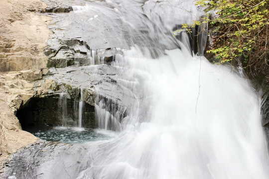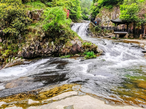 第一泄,水流从石河泻下,瀑布小巧平缓,柔美如月笼轻纱,隽永奇秀。