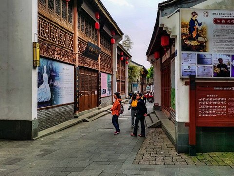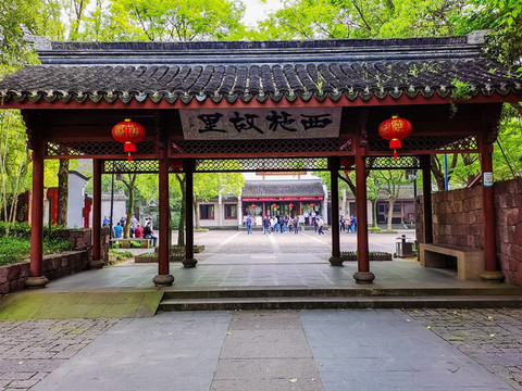 首先映入眼帘的是一座新建的牌楼,采用的是江南建筑常用的青黑色瓦片作为牌楼的宽檐,门楣之上是一块白色的匾额,上书“西施故里”四个大字。