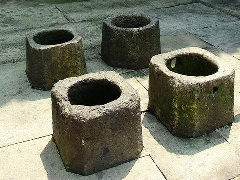 四眼井外形四孔,上设四个圆筒形井栏,左右并列相对而置,故名“四眼井。据清光绪《三修诸暨县志》记载,古时井附近民居“岁出佳丽”。其始建年代已不可考。井壁用块石叠砌,泉水终年清澈不涸。井栏直径50厘米,高60厘米,全系石制。该井在明、清代地方史志中均有零星记载,2006年被公布为市级文物保护点。