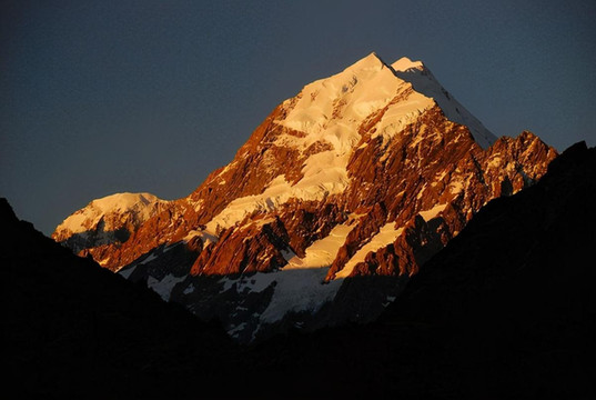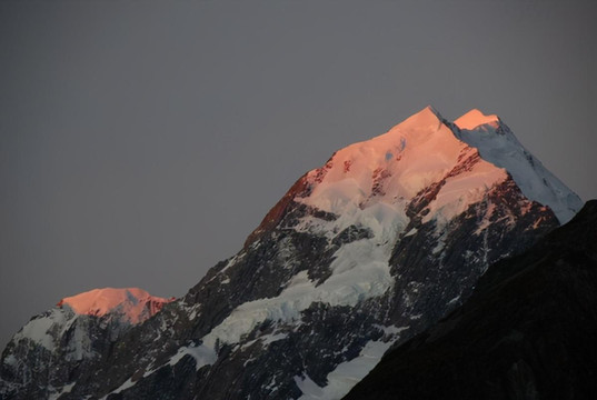 身披晚霞的库克山峰: