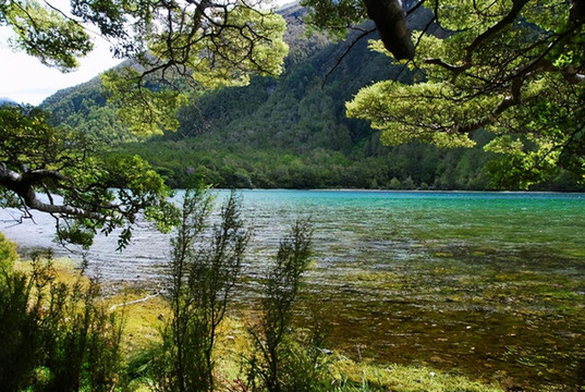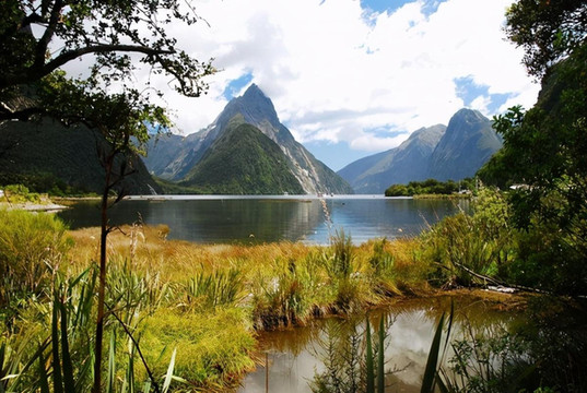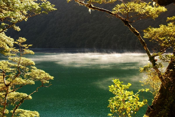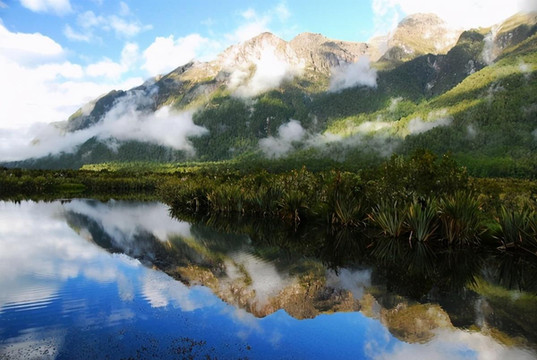 去米尔福德峡湾路上的镜湖: