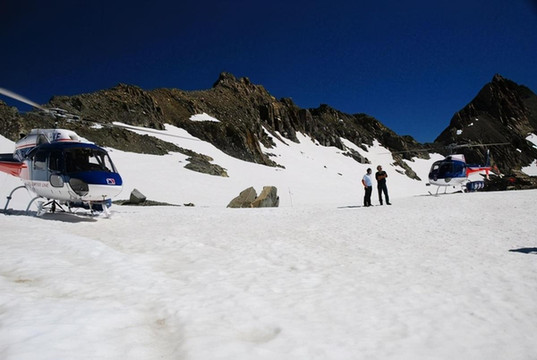 我们分乘两架直升机,同时到达库克山的雪峰: