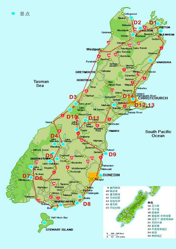 行程从基督城出发,逆时针绕整个南岛一圈,约3900公里。