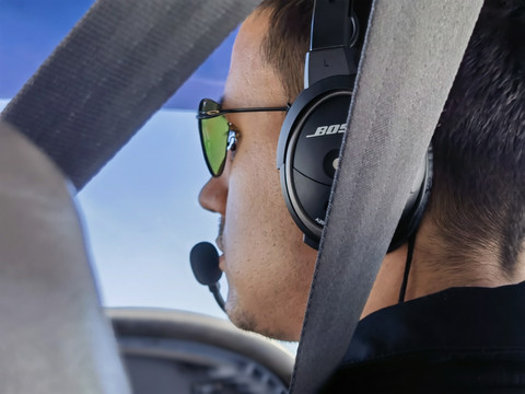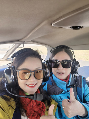 带我们飞行的是一个大帅哥,我和团长先坐进飞机后排,系好安全带,带上耳机。潋妞作为副驾驶和帅哥机长坐在前排。