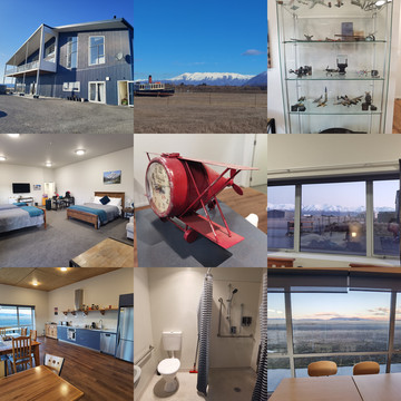 接着我们到附近超市购买了两天的晚餐食材96刀,就来到了今晚的驻地,普卡基机场旅馆(10 Avro Ave Pukaki Airfield, 7999 NZ),1间标准特大号床房和1间家庭房住2晚共1011刀,含早餐。