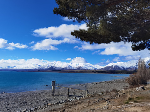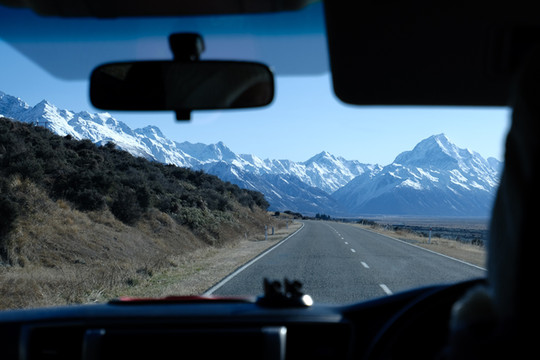早上醒来,太阳高挂,心情大好。我们告别基督城,一路向南,探索南岛。车子开出市区一小会儿,右侧就出现了连绵的雪山,我们兴奋的尖叫,这是南阿尔卑斯山,途中一直伴随着我们,向我们展示它各不相同的风采。