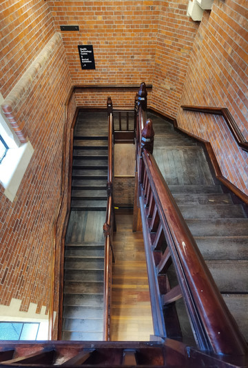 楼梯上方的日光灯和桌椅组合是不是很艺术?