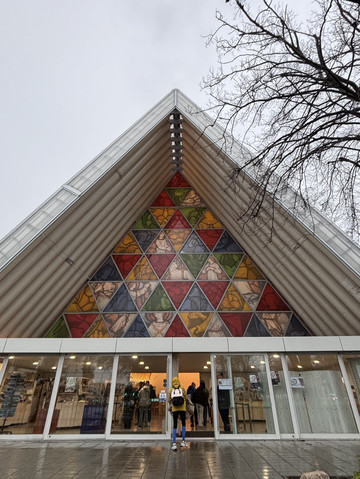 走到这里才发现,这是一座非常有特色的教堂,是地震以后,政府请了日本设计师用硬纸板搭建的一座教堂。我们的运气特别好,今天是周日,教堂向大众开放,而且我们到的时候正是唱诗班进行唱诗的时间,门口的工作人员示意我们里面不能拍照。一群穿着大红色长袍的男女老少高低胖瘦各不同的20多个人陆续走出来,围成两圈,开始他们的吟唱。这是无伴奏的合唱,他们一张口就惊艳了大家。虽然老的头发花白,小的还很年幼,看起来实在不像一个合唱团,但声音却很完美。高音嘹亮,低音深沉,融合在一起,穿透力很强,完全没有违和感。再加上管风琴的加持,简直就是天籁之音,我们听的非常享受,一直到司导来接我们,才恋恋不舍的走出来。虽然一个字也听不懂,但音乐没有国籍,我们依然沉浸其中,这美妙的声音也是今天的意外收获吧。