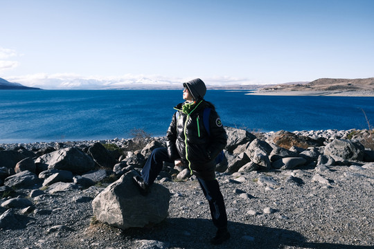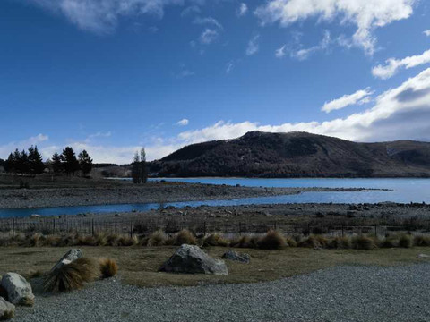 大约又开了50分钟,又一个牛奶蓝色的普卡基湖Lake Pukaji展现在我们眼前。人们说新西兰不缺好看的湖,真的是这样。普卡基湖和蒂卡普湖就如同两个姊妹湖,他们都被雪山环绕,是冰川融雪而成,湖边的各种石头、灌木、苔藓、野草,都仿佛众星捧月般的围绕着湖水的那一抹蓝,真令人陶醉。