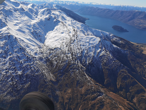 今天天气很好,风也很小,整个飞行途中非常平稳,很少遇到气流颠簸,所以乘坐的体验感也比较好,感觉和座客机没有什么差别。从飞机上往下看,雪山、湖泊、农场、云海、冰川都美得不像话,一个小时的飞行时长刚刚好,这样可以一直飞到雪山上面,如果是半个小时的就飞不到雪山上面,只是在湖边绕一圈,所以建议大家要选择一个小时的飞行。机长在飞行中指导潋妞如何操控飞机,反正我也听不懂,只能拍拍拍。潋妞感概,我要好好学英语。是呀,口语不行啊,交流起来太困难了。果然不出所料,作为社牛的韦老板英语超级溜,一路上和机长聊个不停,体验感拉满。让我们一起来看看,从上帝的视角,俯瞰瓦纳卡湖和瓦纳卡镇的美丽景色吧!