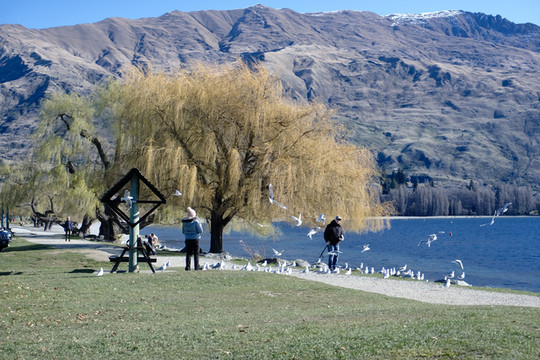 中午我们来到瓦纳卡湖边,再一次被湖边的美景震撼。韦老板说,这里比瑞士琉森小镇更胜一筹,可能是好天气的加分吧。正值中午时分,阳光温暖,气温舒适,无论是在湖边漫步,还是坐在街边的长桌前发呆,都有着心旷神怡的感受,真是个来了就不想走的地方。
