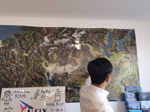 早餐后,我们和热情的女主人告别,向着今天的目的地瓦纳卡出发。按计划,今天我们的主要行程有两个,一是开飞机,二是逛酒庄。司导帮我们提前预定了11:10的开飞机项目,670刀每人,一架飞机可以免费带2名乘客,所以我们6个人刚好订了两辆飞机。从这里出发大约两个半小时,途中在一个小镇加油时,我们还买了农场特有的牛奶,8刀一瓶,归还玻璃瓶可以还3刀,这个牛奶真是香浓丝滑,是我在新西兰最喜欢的,喝起来有奶油的味道,太棒了。