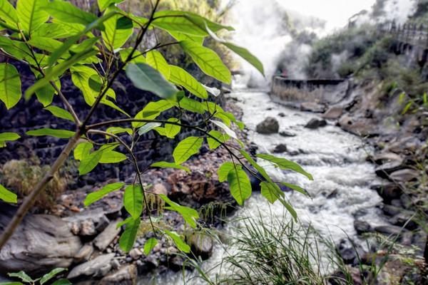 热海景区位于腾冲市区以西8公里左右的地方,我们自驾仅花了20来分钟,如果想乘坐公共交通,那么2路车的终点站就是热海景区,打车的话也很方便。刚走进进去,就可以感受到滚滚的热浪和扑面而来的硫磺味,那是因为周边奔腾的流水很多都是温泉,地面不少石头上面甚至贴上了“小心烫伤”的标语,十分神奇。