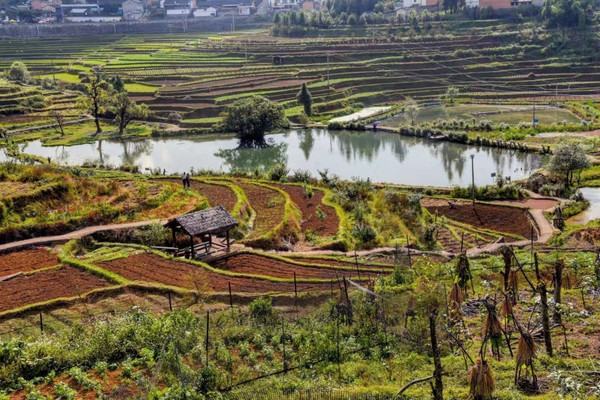 为什么这个佤族村叫做“司莫拉”呢?其实这是佤语,翻译过来的意思就是“幸福的地方”,它距离腾冲市区并不远,差不多十三公里,自驾的话半小时左右即可到达。在进入村子之前,可以看到一个大型的观景台,站在观景台上可以看到佤族村的梯田,佤族的村寨多建在山坡或是小山巅上,梯田也就成了佤族的农耕文化代表之一,梯田中央还有一塘黑泥潭,据说佤族特有的“摸泥黑”传统活动以后就会在这里上演。