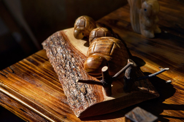 第三就是选材的不同,虽然说皮影戏并没有规定用什么材质去做皮影,但是其实大部分地方的人都会用驴皮,因此也被老北京人叫做“驴皮影”,而腾冲的皮影则多选用牛皮,要是你去到后台把玩一下的话可以发现比一般的皮影重一些,正是选用了牛皮的原因,其他流程则大同小异,毕竟是一脉相承的中国传统文化,后台还有不少老师正在手工创作皮影,有兴趣的也可以多多观摩一下。