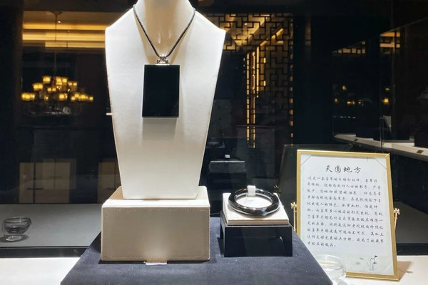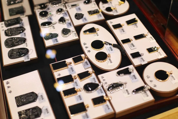 看到了售价3344000元的镇店之宝,一套叫做“天圆地方”的墨翠,非常大气。