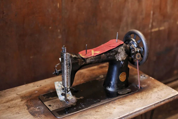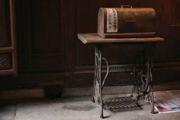 除了价值百万的56扇铸铁窗花,家堂里摆着一台古老的英国缝纫机,也是绝版古董。