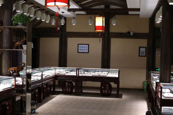 这个旗舰店一共有五层,非常的气派。跟和顺古镇的福盛隆一样,也都是明码标价不还价,顾客可以根据自己的心理价位,选购喜欢的翡翠工艺品。