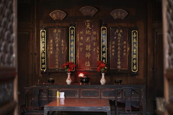 正对着院子的一间,是一个家堂。上书“五福堂”“奏善堂”“流芳堂”等字样。