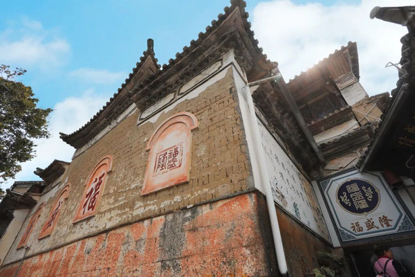 和顺古镇里的有一家福盛隆翡翠,斑驳的墙印证着时间的流逝。