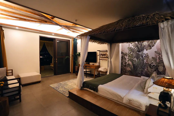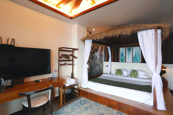 装修风格很东南亚,茅草屋顶烘托着随意和休闲。