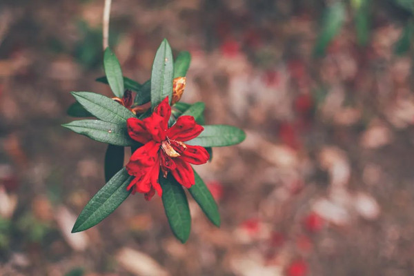 山上散落着盛开的映山红,地上落英缤纷,什么都不用想,就这样往前走,手机信号断断续续。