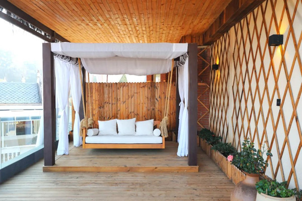 白天喜欢赖在房间的大阳台的秋千里,看整个腾冲的城景;晚上在阳台的温泉池里泡上半个小时,扫尽一身的疲惫。