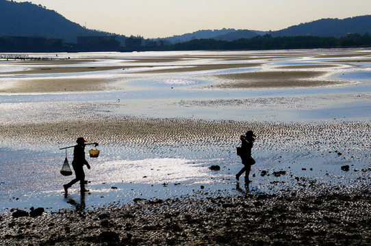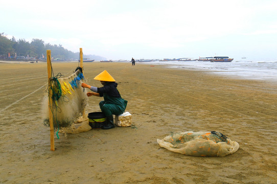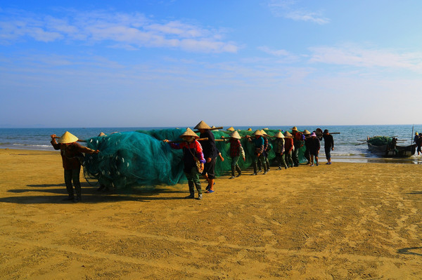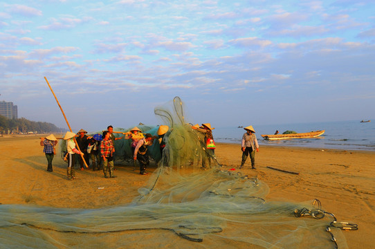 广西-防城港-京岛风景名胜区-万尾金滩-劳作的渔民