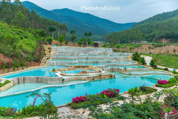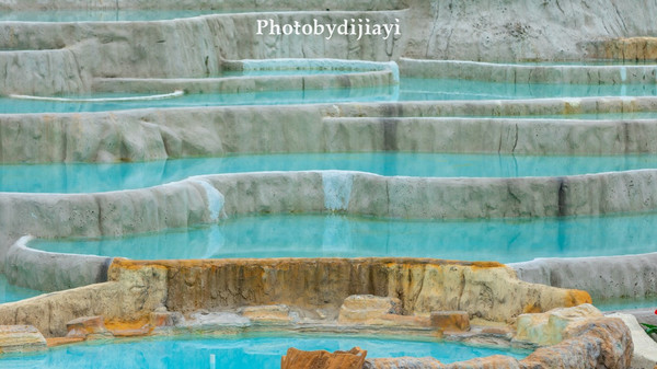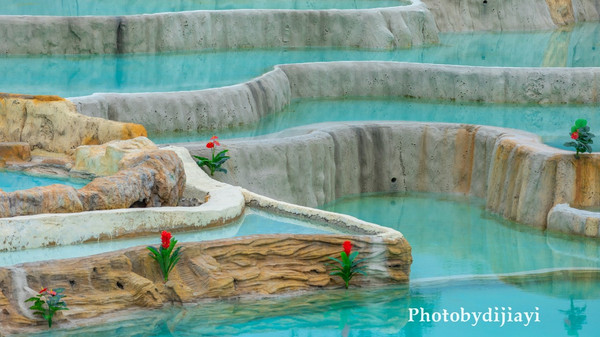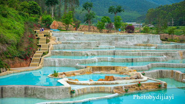 如果仅是单纯的温泉,或许也不太能够吸引我,但走到最里面有一处温泉叠瀑,高低错落,像极了 土耳其 的“ 棉花堡 ”,目测会成为下一个 广西 的网红打卡点。