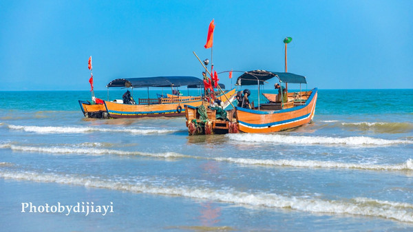 出海:渔船出海捕鱼,一艘可坐6-8人,价格300左右,捕到的鱼虾全归客人