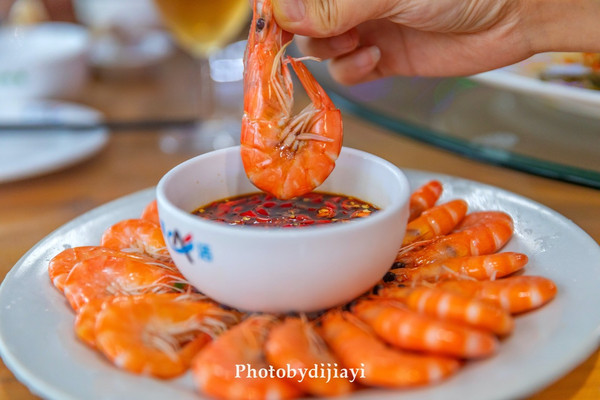 因为老板的秘制蘸料,我又买了海虾,白灼虾徒手吃,很快就能光盘,这个节奏令老板也有些吃惊。
