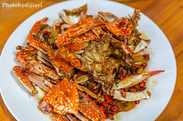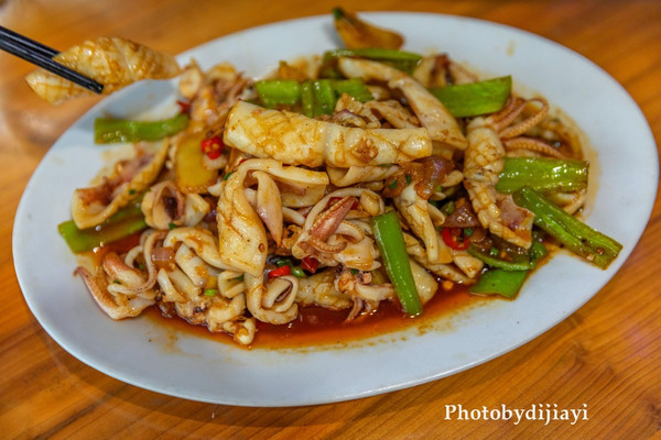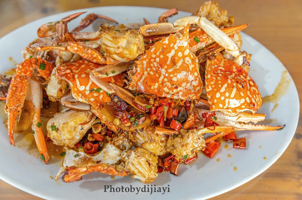 香辣蟹和爆炒鱿鱼是集美的最爱,因为平时我们不住在海边,也吃不到海蟹,只有在这里可以吃到,而且价格比大闸蟹便宜多了,蟹辣味适中,十分入味。