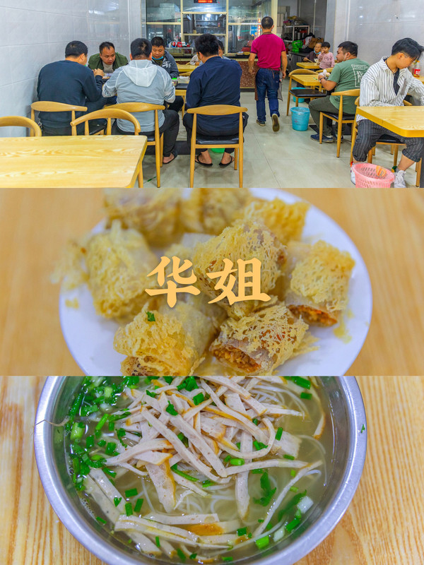 昨天出海天气超好,今天突然下雨,临时被迫取消了出行,那不如改成美食一日游吧。这一家华姐鸡肉粉在当地很出名,是 防城港 小吃的冠军,所以生意自然好,现在店面也由一间变成两间,到中午的时候客人很多。