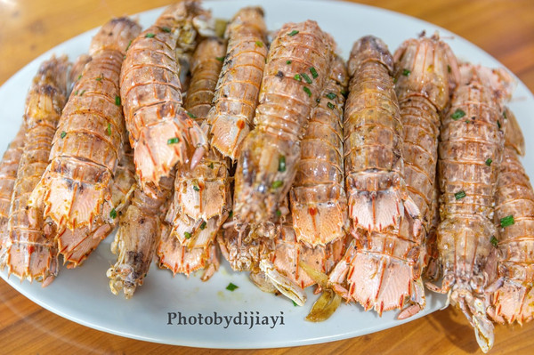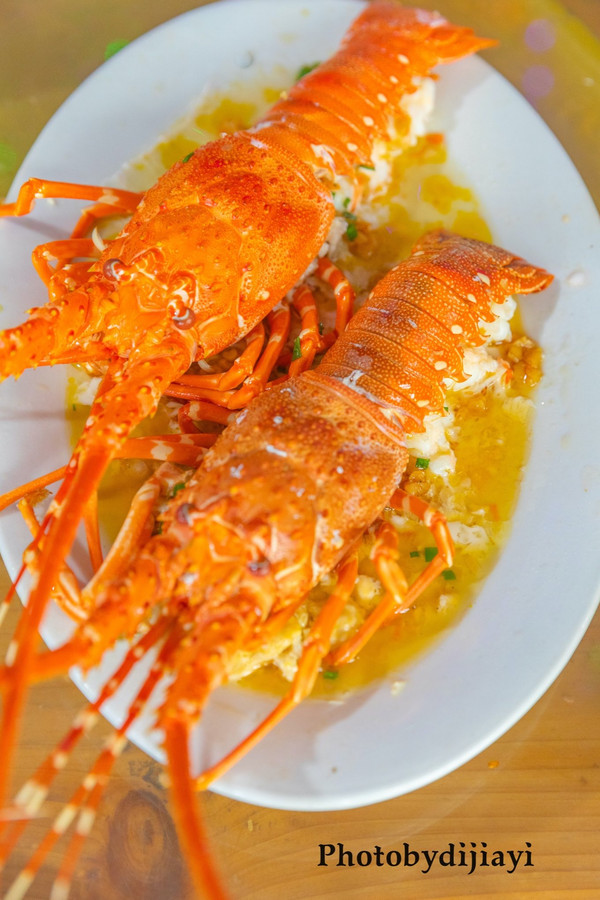 虽然没有捕到龙虾,但不妨碍我吃嘛,市场的龙虾一个也就几十块,便宜到哭,赶紧来两只,再买点海虾,谁让我是吃虾小能手。