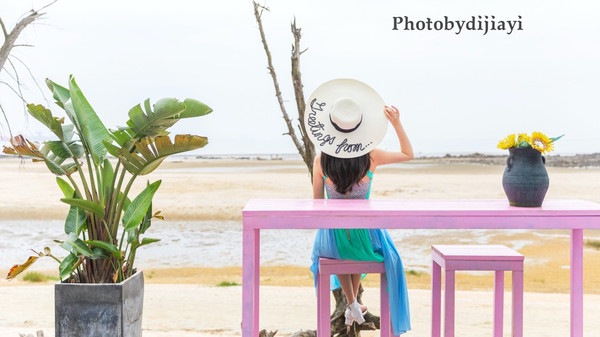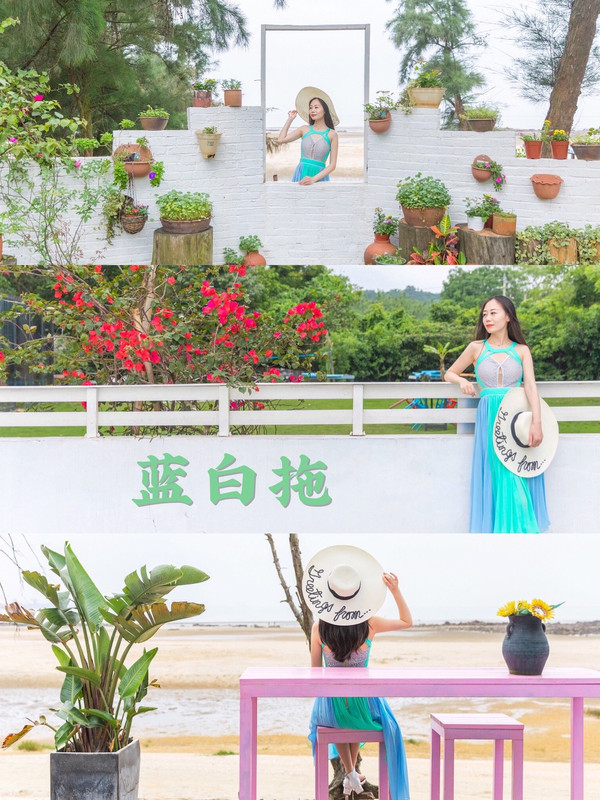 蓝白拖是 防城港 比较早且有名的民宿,这里靠海,所以很有位置的优势,于是店家就建了很多网红的打卡点,方便给客人拍照。