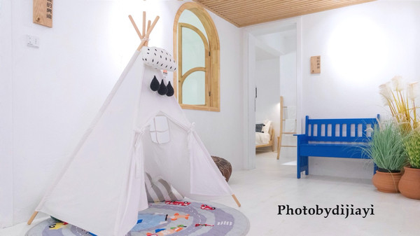 民宿客厅很宽敞,客房的公共区域还有顶可爱的小帐篷,无论是小姐姐还是有小孩子的家庭,应该都很喜欢。