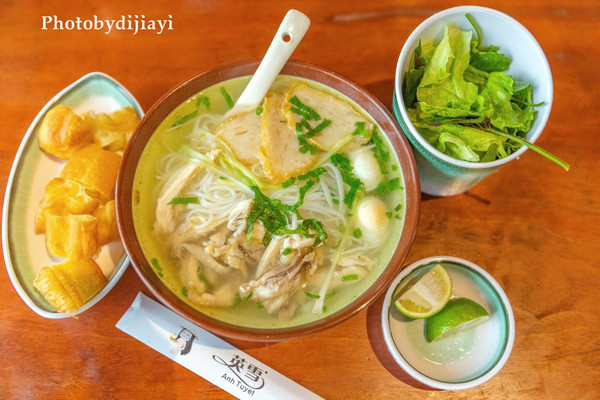 推荐:招牌鸡粉, 越南 面包,春卷,海鲜粉